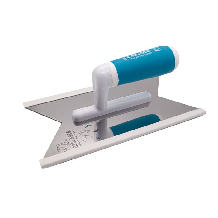 CO.ME Decobræt – FLY24 er et specialudviklet decobræt til hjørner, kanter og finish med høj præcision, hvor et traditionelt rektangulært decobræt ikke har en chance. Den karakteristiske form gør det muligt at arbejde helt ind i indvendige hjørner og langs kanter med høj kontrol og et ensartet tryk.