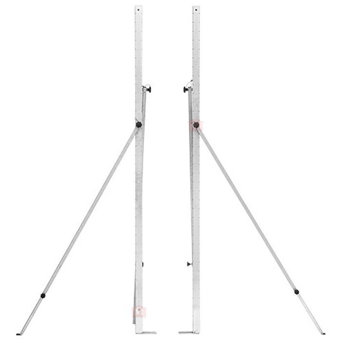 Hjørnejernsæt fra Guldborg med takker, fødder og teleskopstænger. Hjørnejernet er udført i rustfrit stål og aluminium og måler 2 x 50 x 50 x 3 mm. med valgfrie højde på 2,45 eller 3 meterIndstilles ved hjælp af teleskopstænger eller vægkonsoller, som sættes på bagmuren.