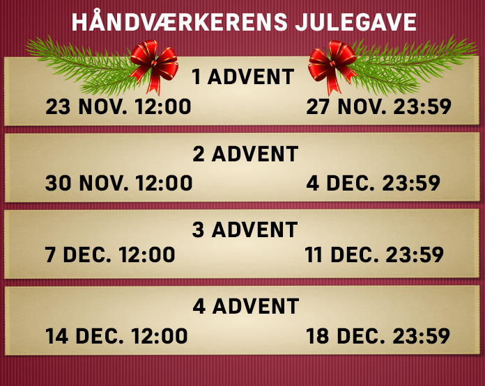 Når du er tilmeldt håndværkerens julekonkurrence, vil du få et ekstra lod ved hver ordre du lægger i webshoppen over 500 kr.