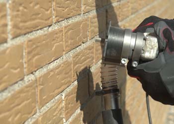 Når de gamle fuger er kradset eller fræset ud, skal man sikre sig, at mørtelrester og løst støv er fjernet fra fugerne. Den nye mørtel skal nemlig kunne binde til murstenene, og den hæfter ikke bag på den gamle mørtel. Ved større arealer anbefaler vi, at du bruger en højtryksrenser. Start foroven og arbejd dig ned ad muren. Det er den bedste måde at få skyllet alle mørtelrester ned fra væggen, så der ikke efterlades støv.