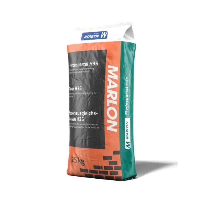 Marlon Flydespartel H35 er en fabriksfremstillet og selvnivellerende tørmørtel på basis af hurtighærdende cement, mineralske tilsætningsstoffer, polymer og ovntørret finkornet kvartssand. Produktets høje indhold af polymerer bevirker, at det har gode flydeegenskaber og høj slidstyrke. Produktet er klar til brug efter tilsætning af rent, afmålt vand efterfulgt af en effektiv blanding.